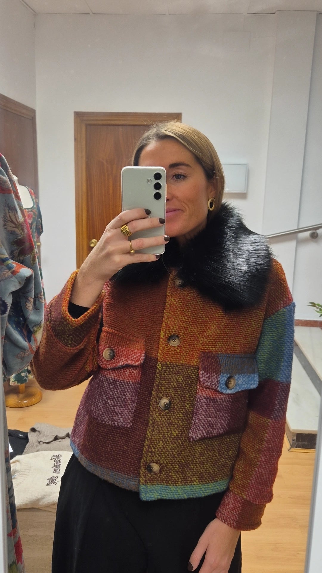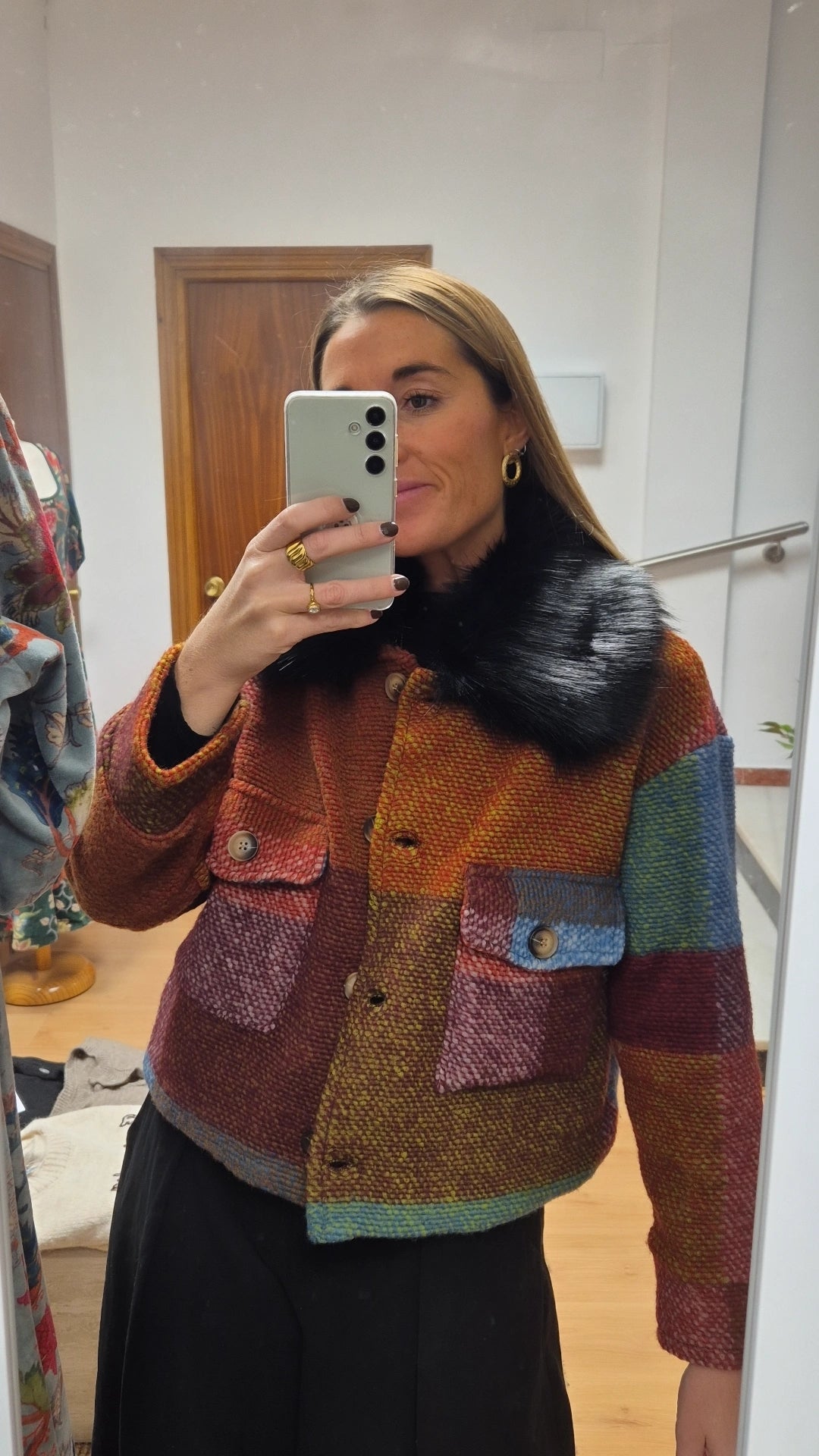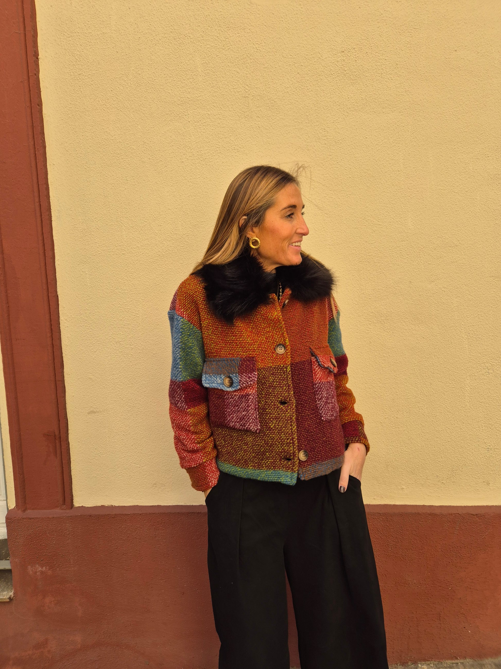 Abrigo colorido detalle pelo