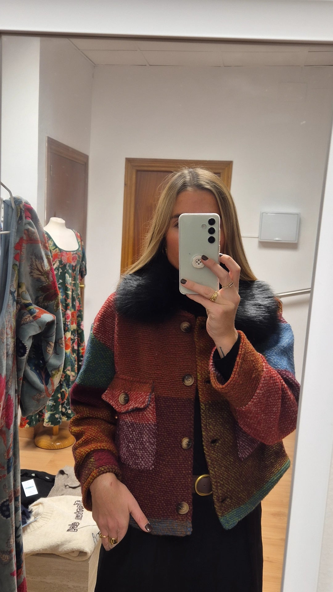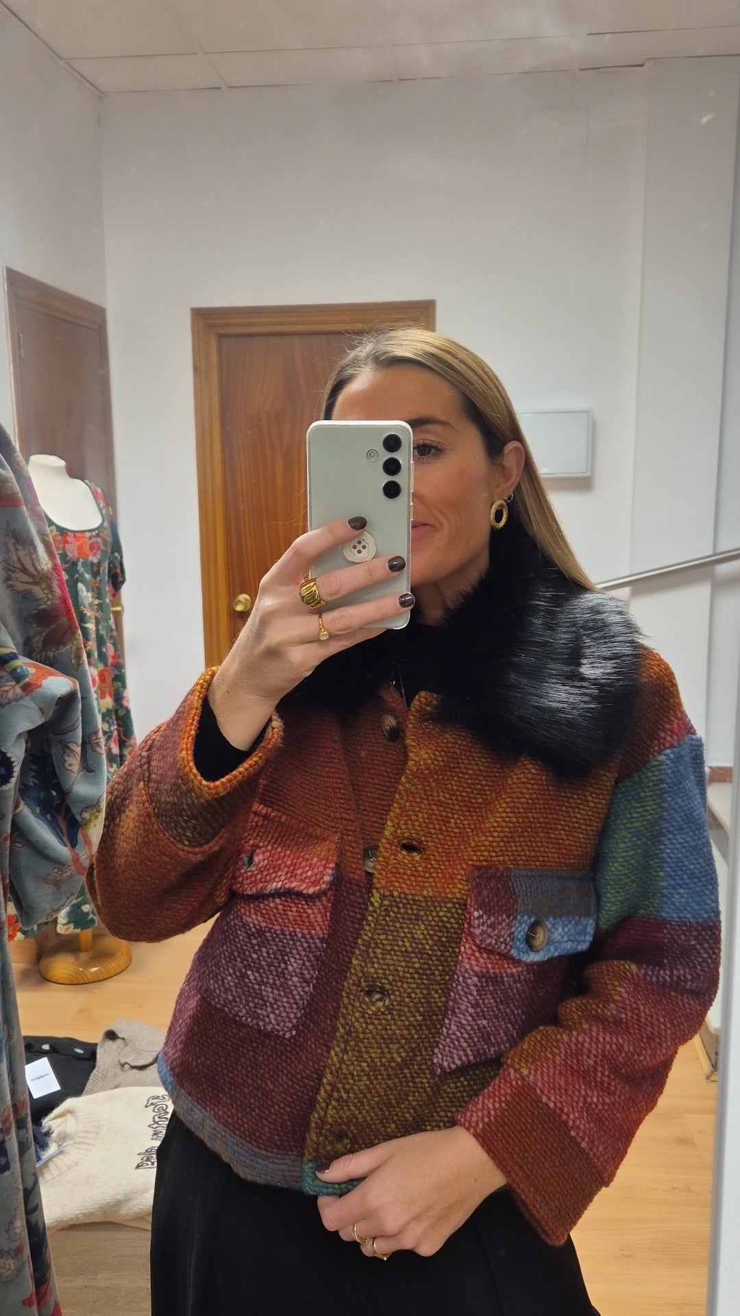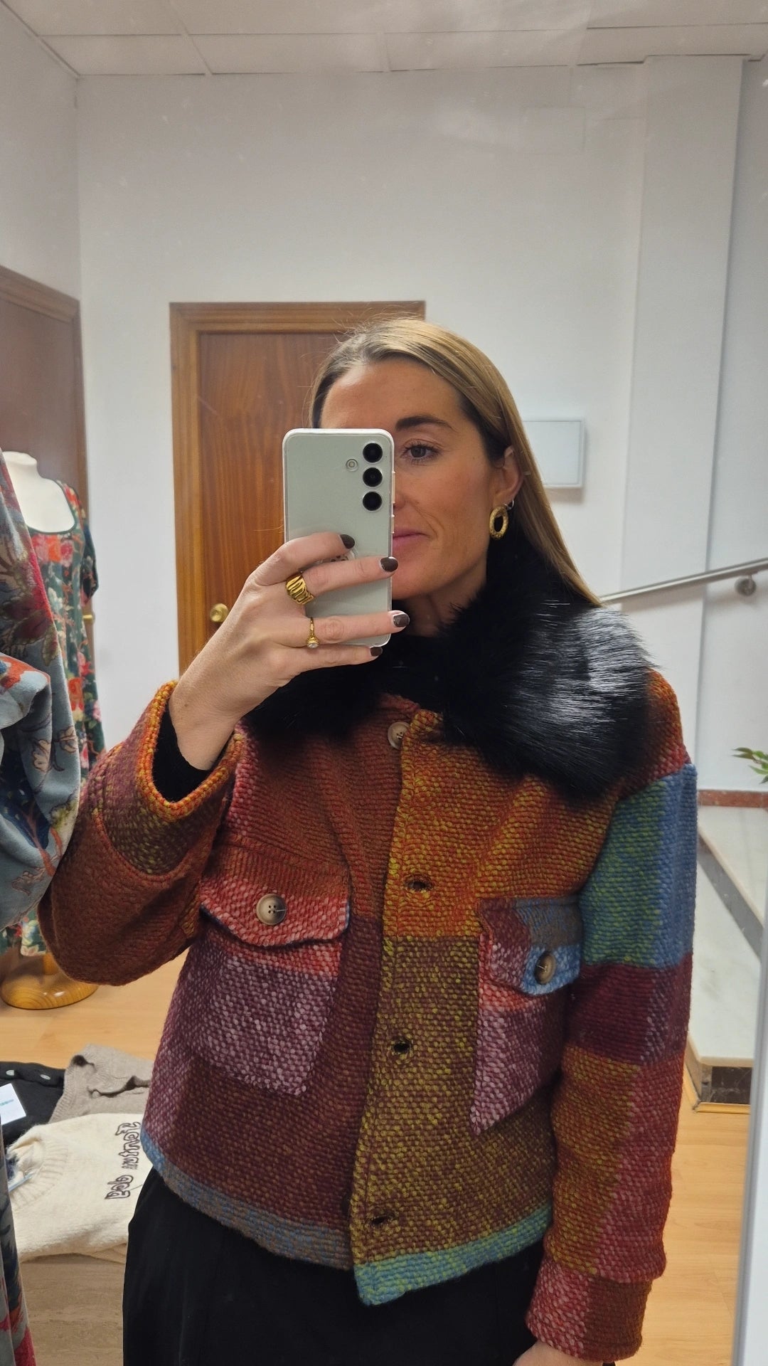 Abrigo colorido detalle pelo