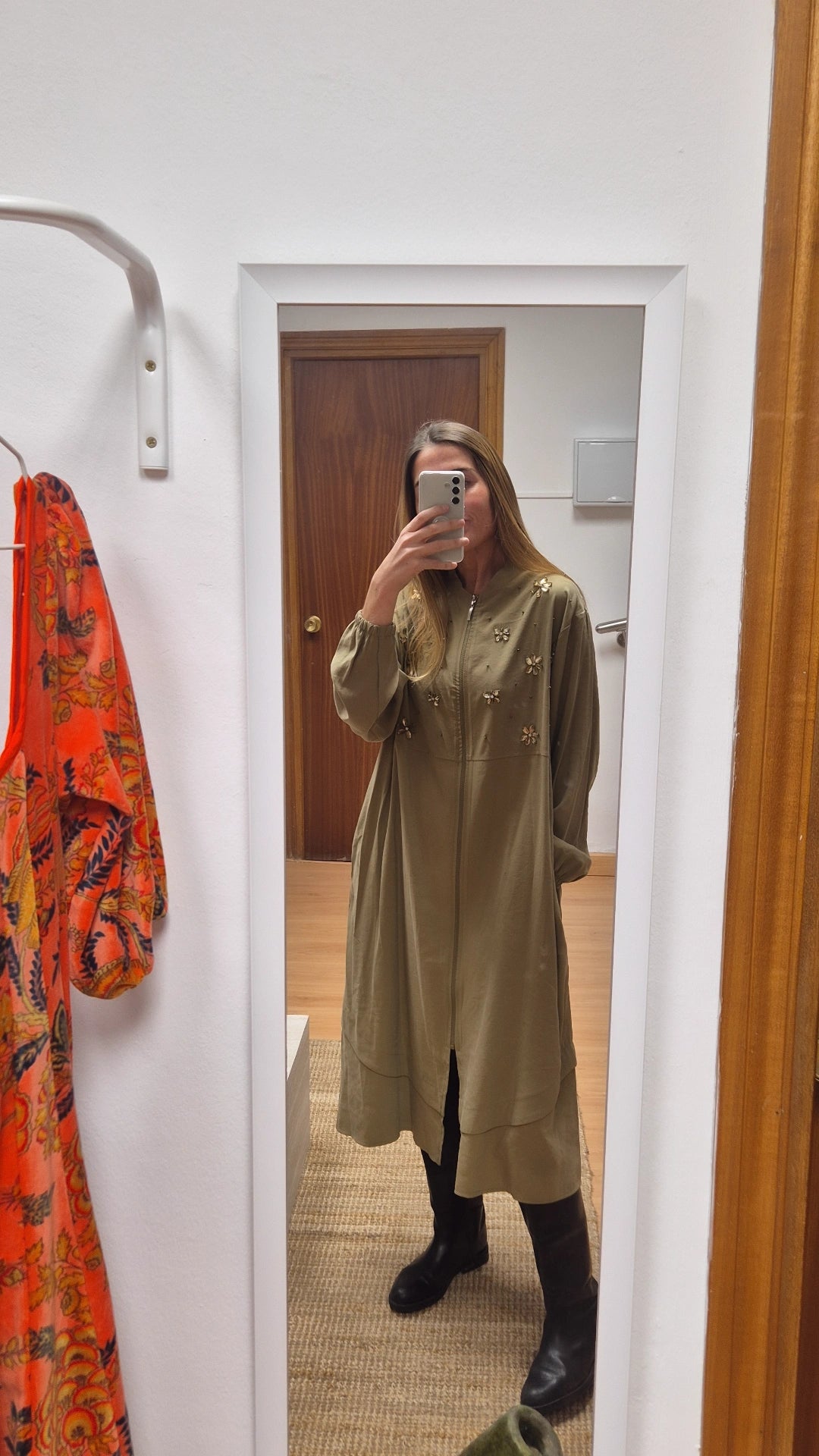 Chaqueta midi de diseño exclusivo, creada para mujeres que buscan piezas especiales y con personalidad. Confeccionada en tejido fluido de caída elegante, combina comodidad y sofisticación en un corte fluido y favorecedor.
