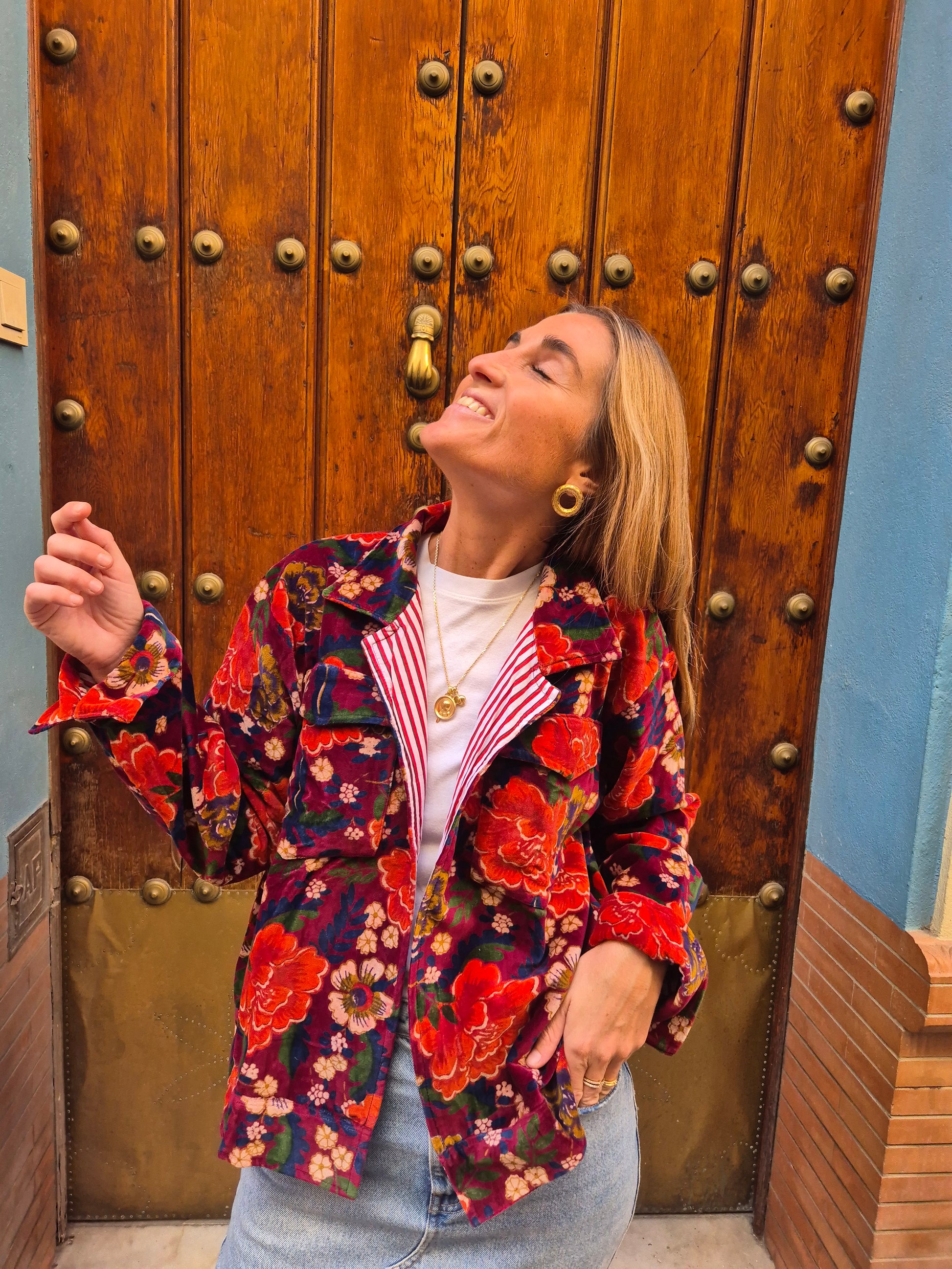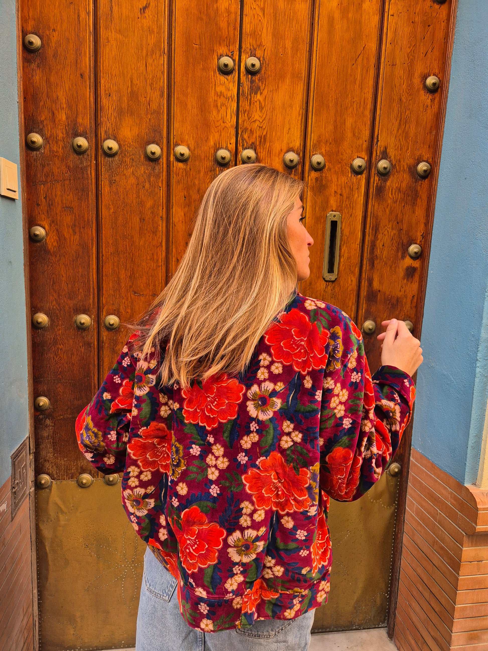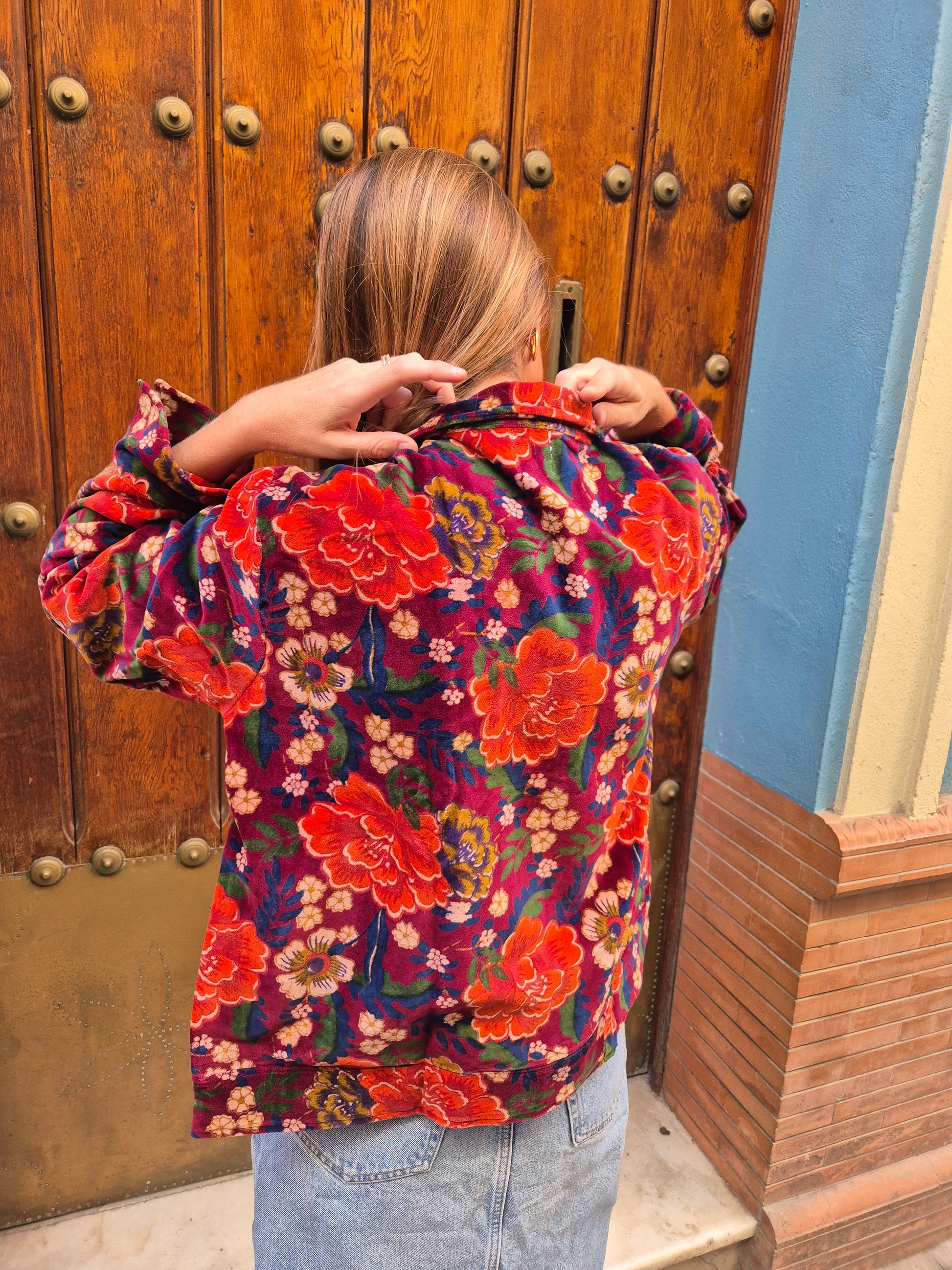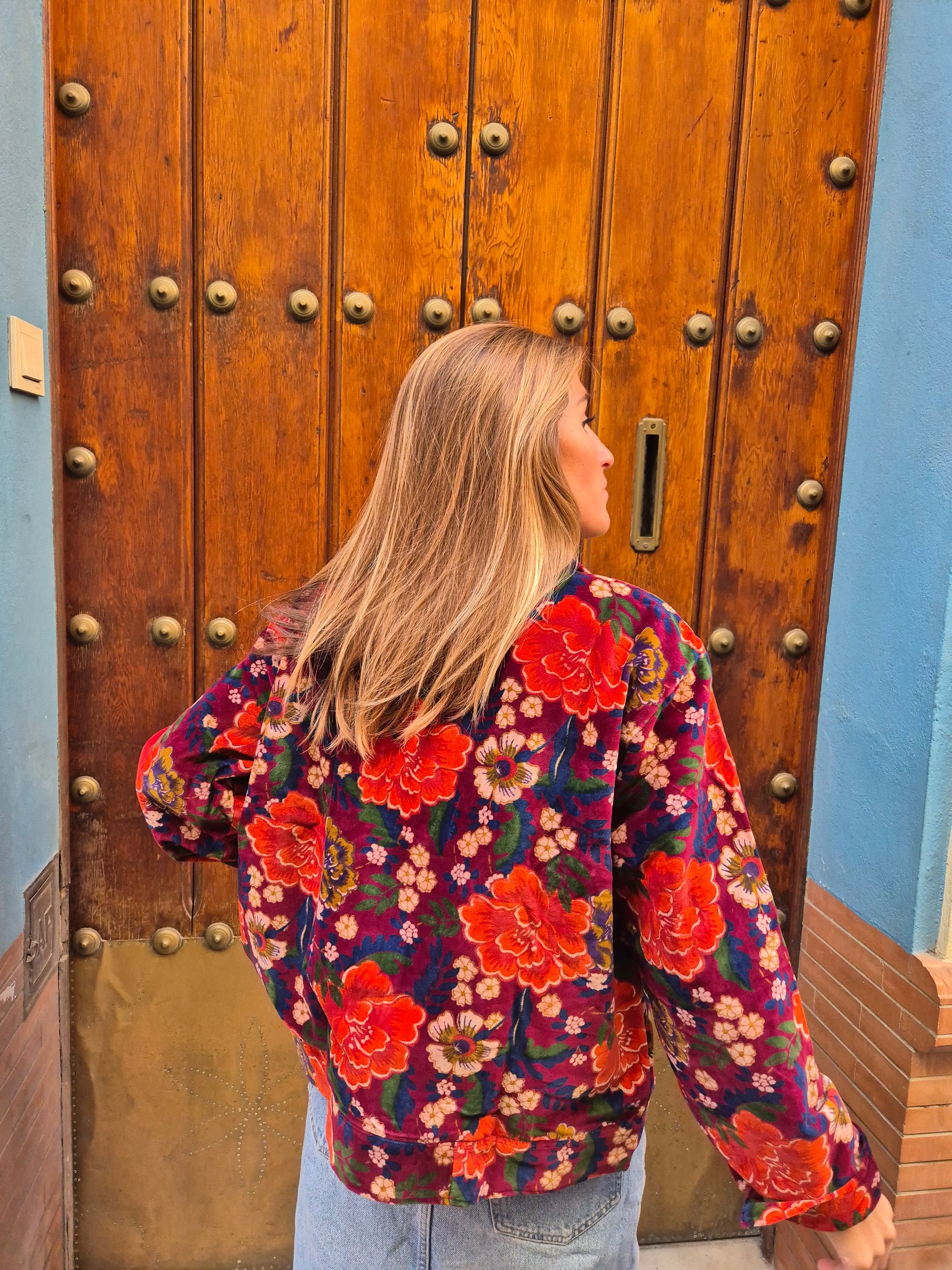 Chaqueta exclusiva de nuestro taller, confeccionada en 100% algodón y terciopelo con un vibrante estampado que no pasará desapercibido.