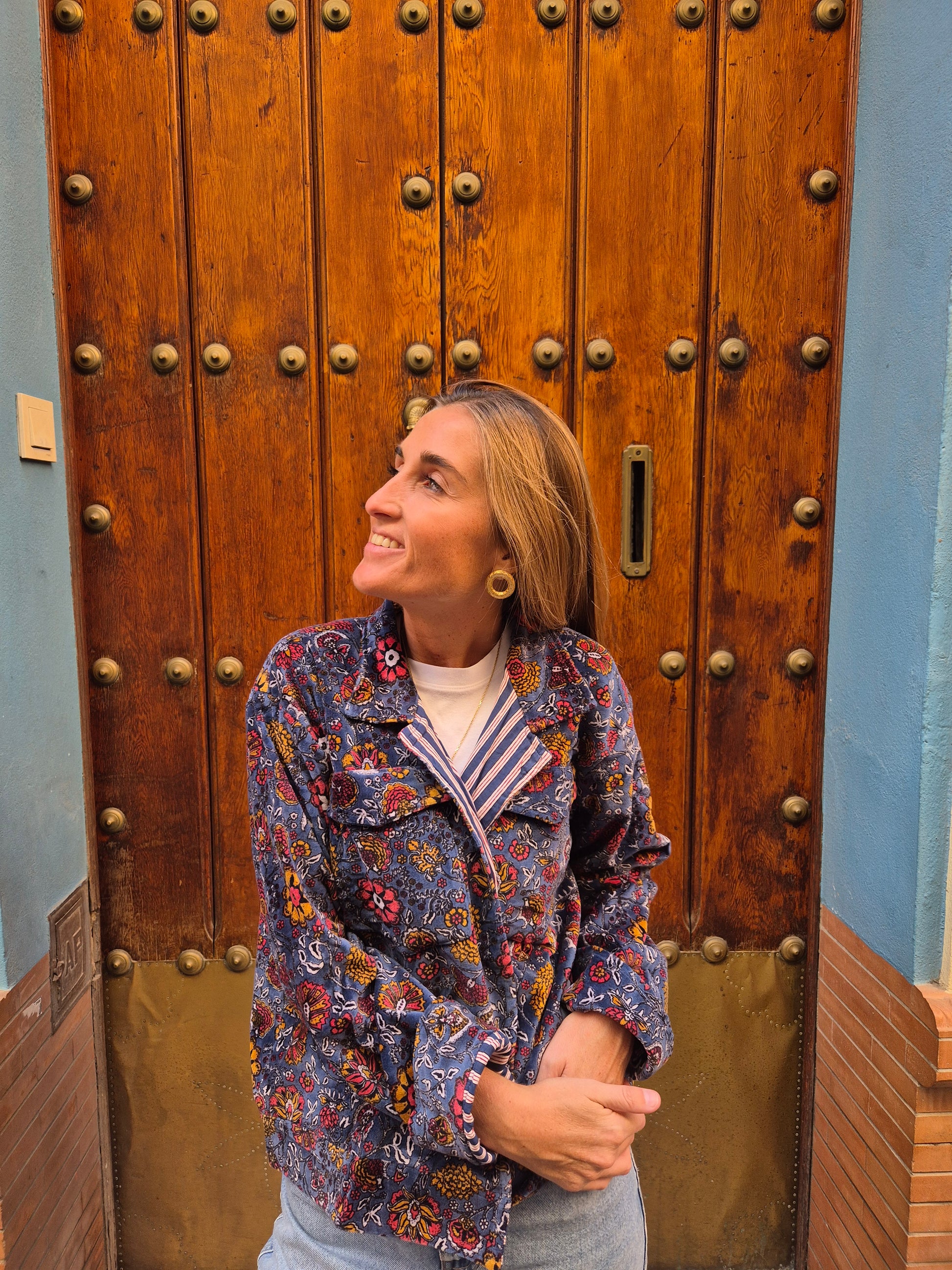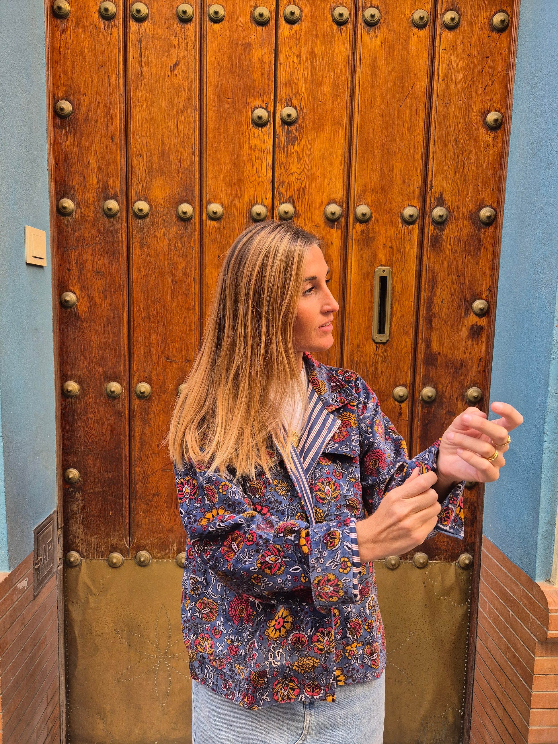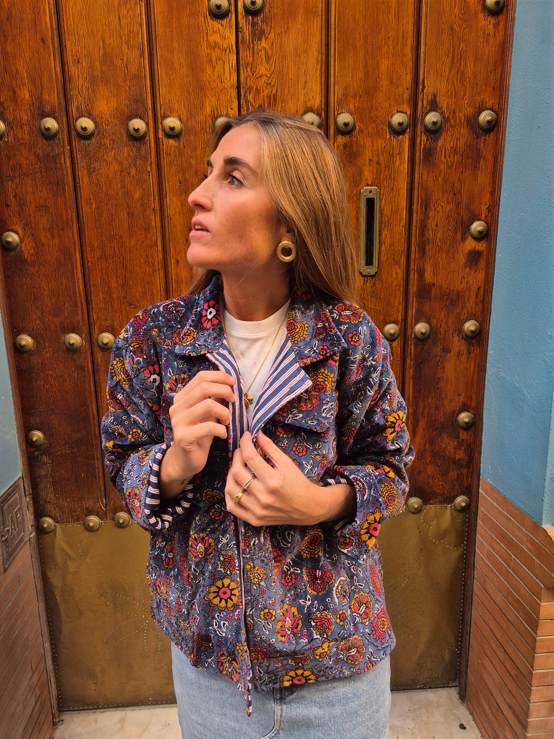 Chaqueta exclusiva de nuestro taller, confeccionada en 100% algodón y terciopelo con un vibrante estampado que no pasará desapercibido.