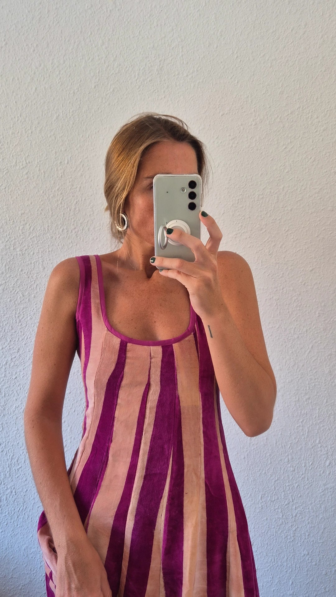 Vestido 100% algodón y terciopelo, confeccionado con nuestro método artesanal Kali, que da forma a los pliegues y caída del tejido.