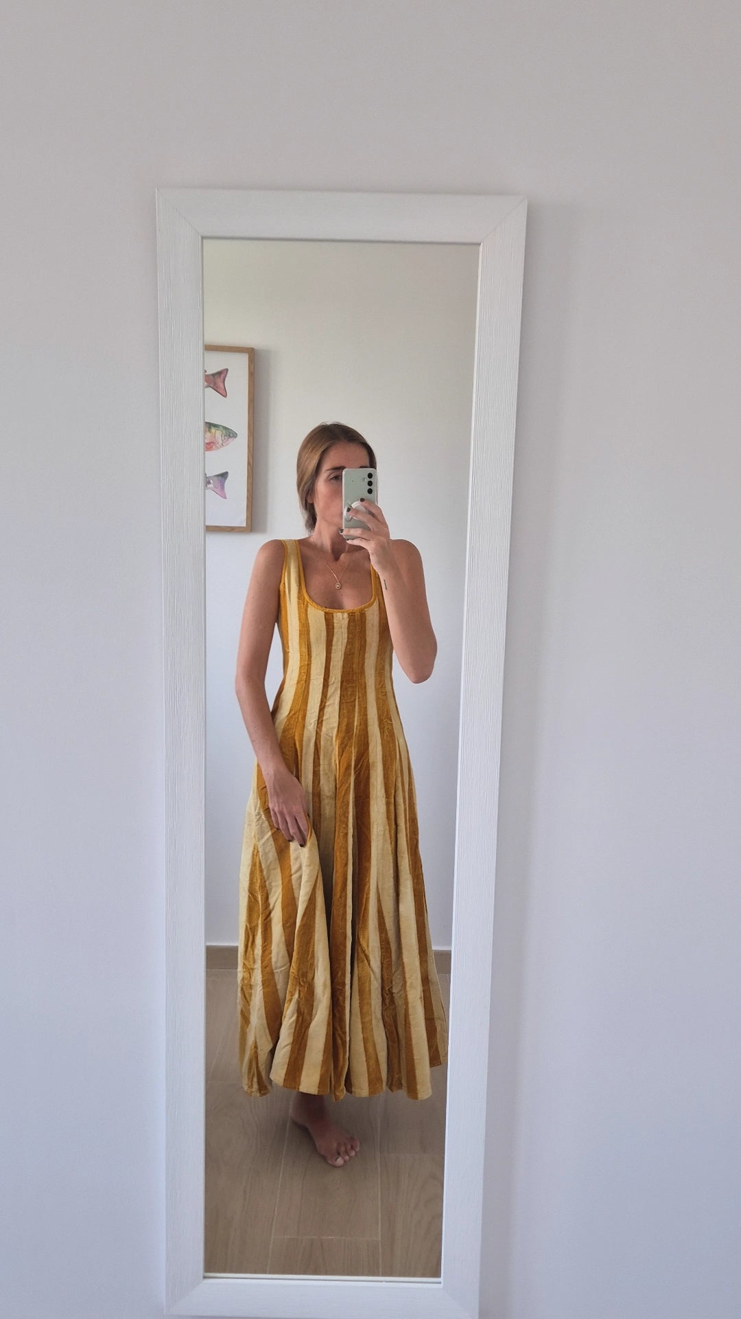 Vestido 100% algodón y terciopelo, confeccionado con nuestro método artesanal Kali, que da forma a los pliegues y caída del tejido.