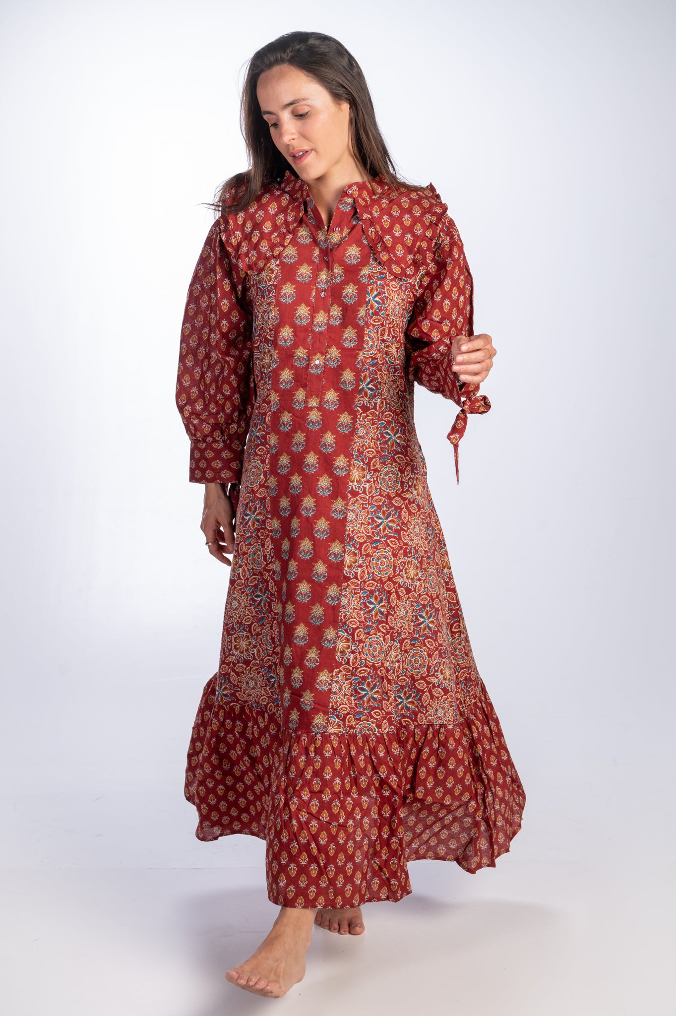 Confeccionado en 100% algodón, ofrece una caída ligera y fresca ideal para los días cálidos. Su diseño combina tres estampados diferentes que se integran en perfecta armonía, aportando un aire bohemio y sofisticado.